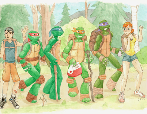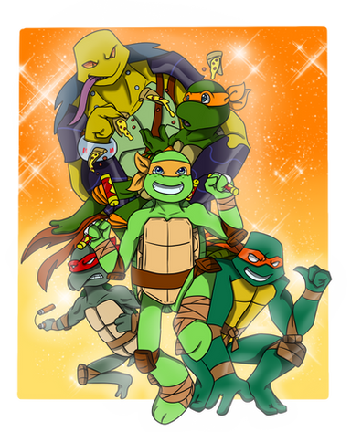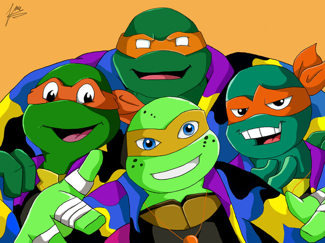 Birthday turtles!My about to be a 5-year-old requested a Ninja Turtle, Bowling, Pajama themed birthday party. So of course, I just **had** to make a picture to go with it. The final invitation included a photo of him in his TMNT costume joining the group.
