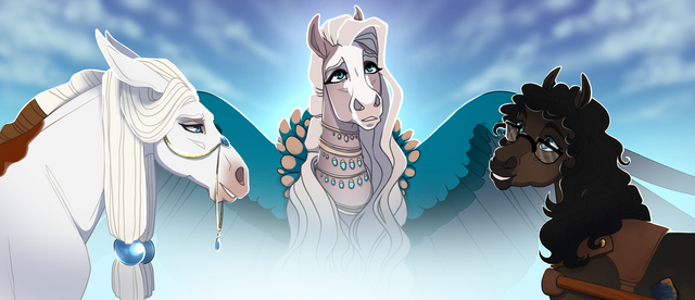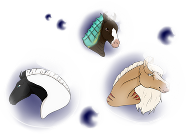 The three of them look so intimidating and divine. <3 Eve looks so incredibly pretty and well I love seeing every horse in your style B) I think I love Rycaron the most, he looks so cool in his angle! <3