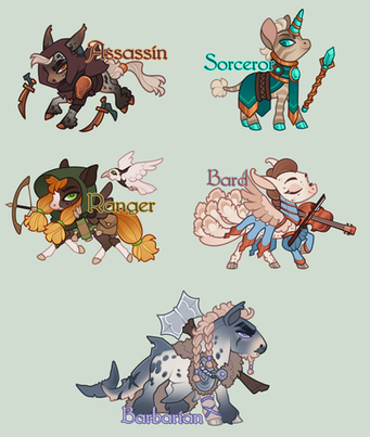 Sorry for the delay on these!! I hurt my back a few days ago and haven't able to complete the other birthstone waves yet - just this friend. ;u; A lot of folks expressed interest in seeing them go up for OTA so here they are, a good-hearted scoundrel and their sharkdog!!