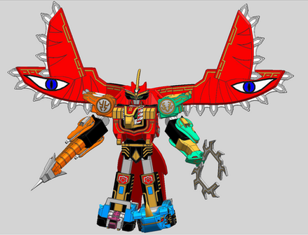 yep ^^ i made him more "demon" like the translation of "makyo" (demon") in the title aof the anime , and the original design have some devil touch ( the head mask , the wing , and the hand have sometimes the forms of the claw )