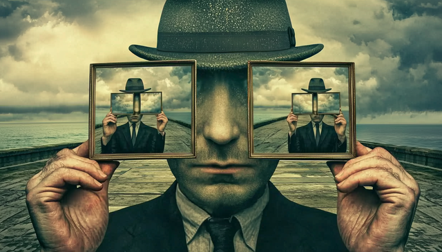 jajaja quΓ© bacΓ‘n! hace pensar como que hubiera de verdad todos esos tipos y no fueran reflejo, por el fondo en comΓΊn... pero a la vez no se salen de los marcos, es como otra dimension xDD
