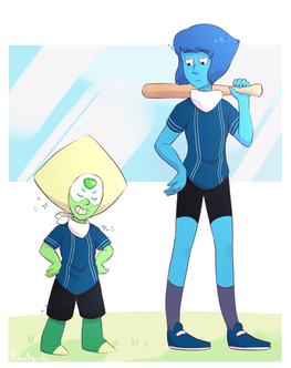 Peridot has an untied shoelace... Given her natural coordination without them, she is going to trip just swinging the bat.