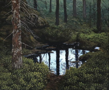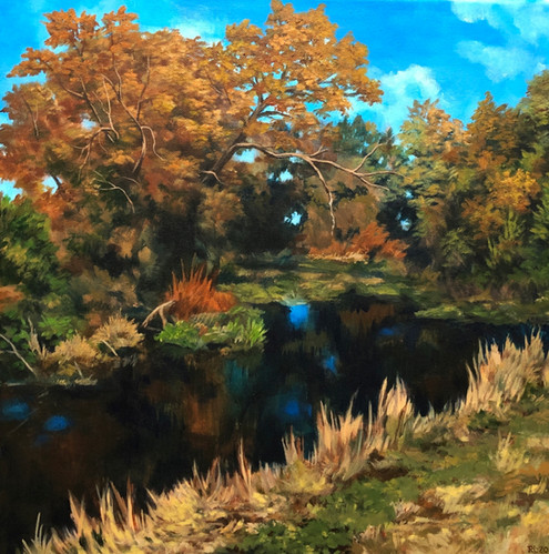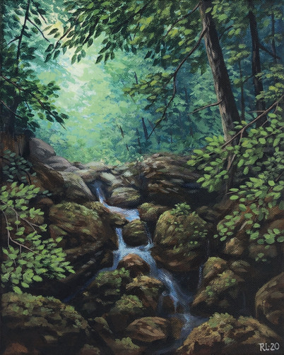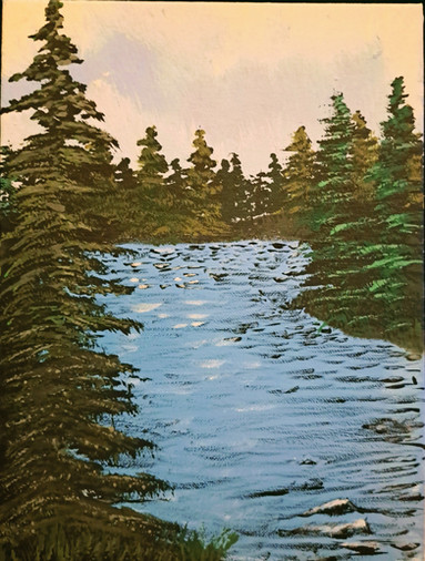 Small river painting, acrylic on paper.Based on a river near my parents house.
