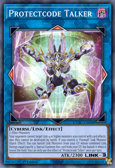 If this card is Link Summoned, you can target 1 Link Monster in your GY and return it to the Extra Deck then have this card gain 500 ATK times that monster's Link Rating. You can only use this effect of "Cynetcode Talker" once per turn. Once per turn, if a card(s) you control would be destroyed by a card effect; you can return 1 monster you control that this card points to to the hand instead.