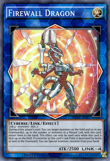 If your opponent activates a card or effect (Quick Effect), you can banish this card until the begining of the next phase and negate the activation, and if you do, destroy that card, then when this card returns to the field, it gains 1000 ATK until the end of turn. If this Synchro Summoned card is sent to the GY by an opponent's card or as Link Material, you can target 1 Link Monster in your GY and Special Summon it. You can only use each effect of "Firewall Interception Dragon" once per turn.