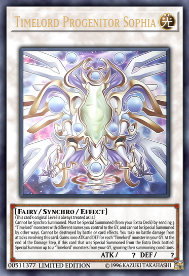 You can Normal Summon a "Timelord" monster without tributing, in addition to your Normal Summon/Set, but its effects are negated and its Level is reduced by 1. (You only gain this effect once per turn.) If a "Timelord" monster you control is shuffled into the deck by a card effect, you can discard this card and add 1 "Timelord" monster from your deck to your hand with a different name. You can only use this effect of "Time Spectre" once per turn.