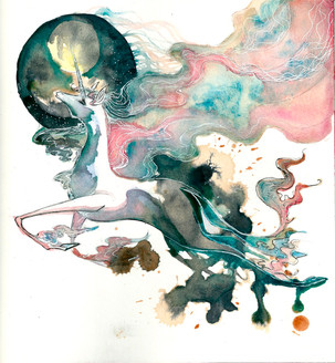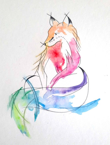 In this picture, I used copic multiliners for the line, watercolor for the base colors and then colored pencils for the more vivid parts of the coloring. I haven't tried pencils on top of watercolor like this before, but I like the look and I might try it again soon! And for the shiny parts, I used white ink that I painted on with a fine brush.Β