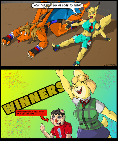 this gift art for my Friend of her Pikachu Tina that just beat the crap out of sonic. got what out for her she a real sneaky fighter.tina (c)