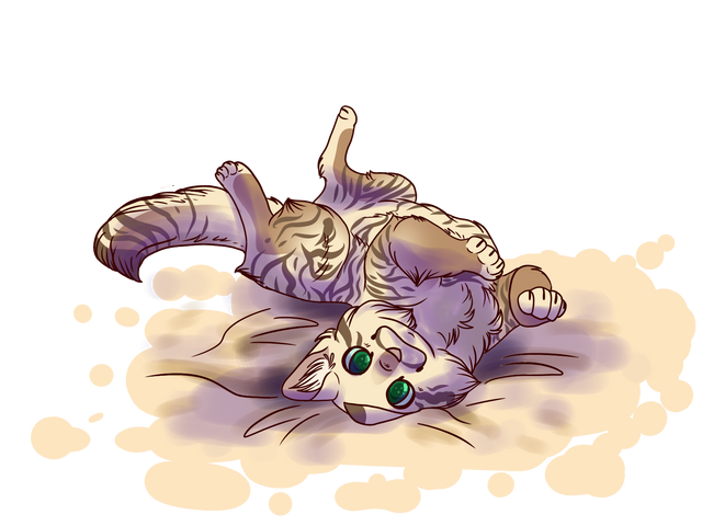 Oh that darling face, and the pretty ears... and the shading on the cat's back, no really all the colours work so well together. And that's not even mentioning the delightful pose~ ;3;