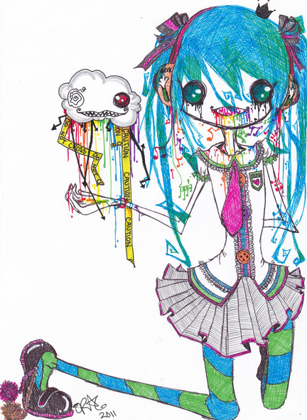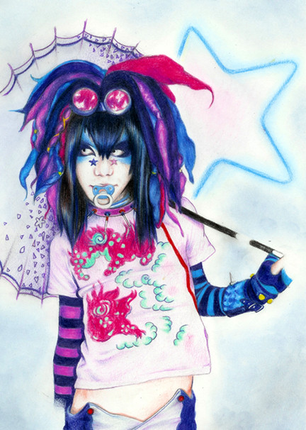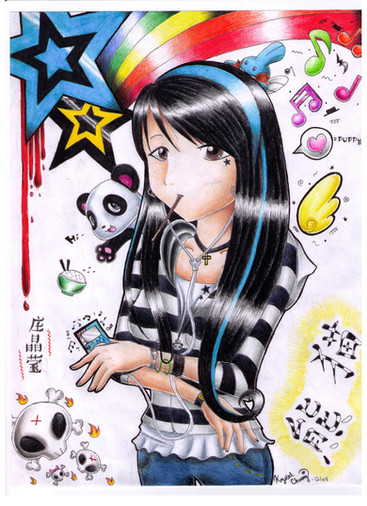 that's awesome! the blood lips i mean! and your drawing/watercoloring too! i utterly fail at art, so don't put youself down! that's amazing, now i want to ink a decora girl, but it would only be in black and white *boo hoo*