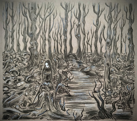 #darkness #drawing #foliage #graphite #illustration #macabre #nightmare #pencil #sketch #spooky #surreal #swamp #tree