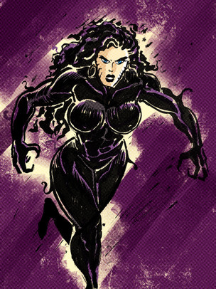 So, since I'm trapped/stuck/holed up in my house during the largest snow storm for our state this year I figured that I'd try to do something constructive today. And after making my way home from a half day of work through the blizzard, getting stuck 3 times, and digging myself out I felt that some good old computer coloring would be fun.Here's the colored version of my pencil drawing of Inque from Batman Beyond. I really like how it turned out. Instead of going with a straight black coloring with the color "highlighted" in, I went with a deeper purple and then built highlights upon that. The background is a screen capture from Batman Beyond--gotta love purchasing the seasons on DVD. I then tweaked it to get the scratchy, fuzzy look that Batman Beyond's intro has and I feel that it's successful. To complete the process, I placed a nice layer of black to force the color to pop which I felt was much better than a traditional white background.