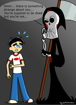 I loved making this! Its simple yet its to the point and its about my favorite ghost boy! I do admit, I did use references. His ghost form pose is from Torrent of Terror (without the rain), the human form pose is from Splitting Images (I think) and the last part is of my own composing.