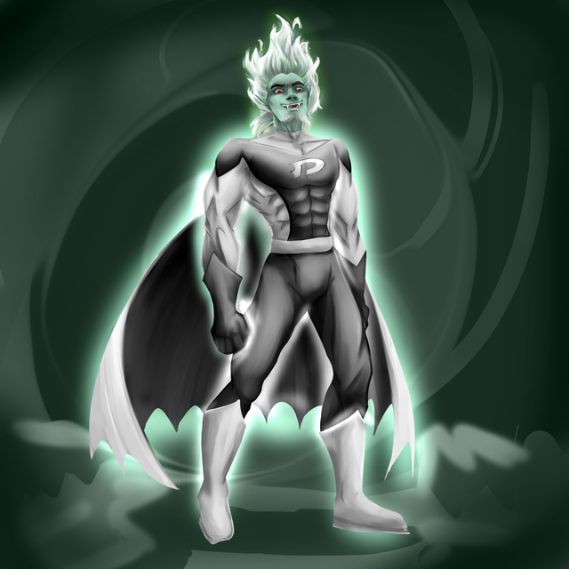 Anywayz I wanted to play with lighting and shadow features. I originally intended his eyes to be red but it was too contrasting to his green face and drew the eye away from his whole figure.
