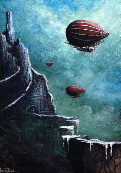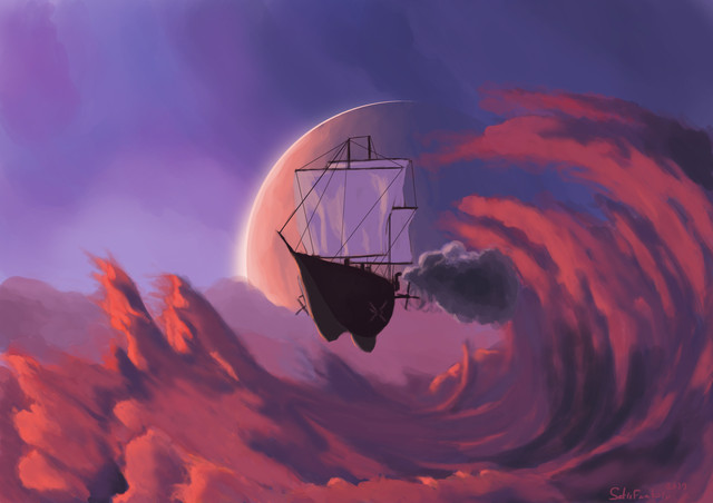 #digital #explorer #fantasy #airship #digitalart #digitalpainting #landscape #moonlight
