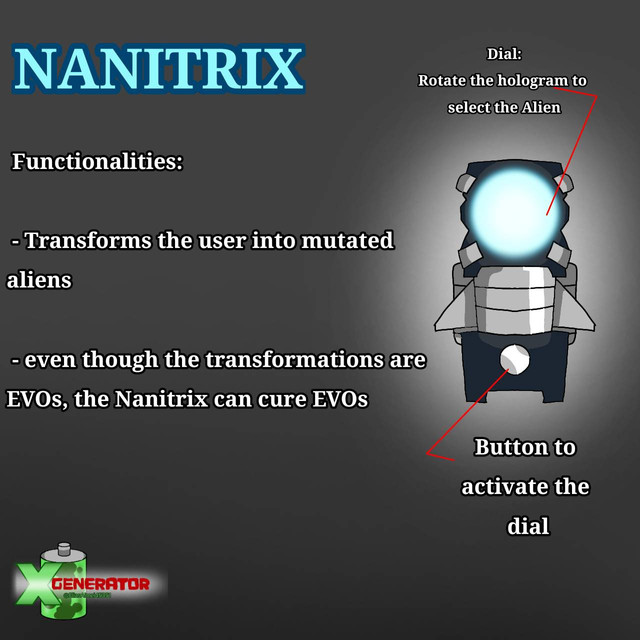 Base byThis is the Infinitrix... similar to the Omnitrix however it can not only scan and copy alien DNA... it can also create new DNA allowing the creation of new species. Created by my OC Grande a half human and half Mechamorph who wanted to be like Ben.