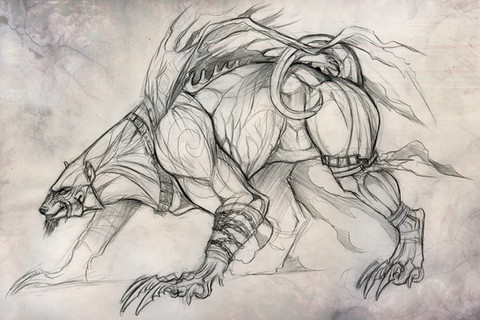 I really like that the face appears more feline than canine, while not looking entirely as either.