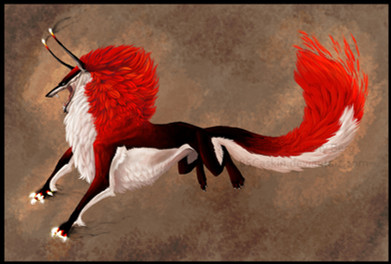 Amazing creature here. The artwork is stunning and the expression is very awe-inspiring. Canine/zebra/dragon crossbreed?