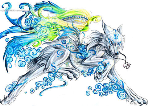 I love the big paws and floatiness! I'm really impressed with the way you draw wolves and caninesque creatures, stunning and enjoyable ^.^!