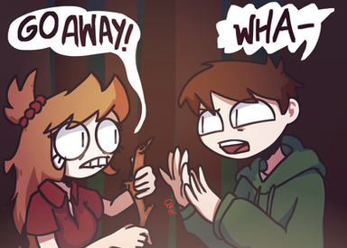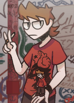 this one artwork is just about that fact, tord getting just tired of mini tord doing his stuff and having to take the responsibility of these actions. it is the most violent -if i could name it in some way- relationship between mini-original.