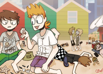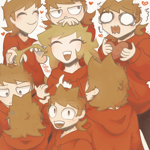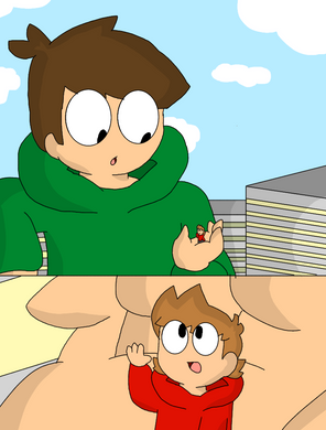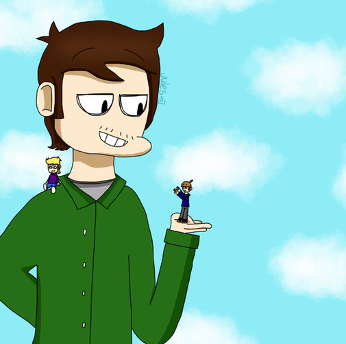 well since I'm in deviantart and i love writing endless captions for every artwork i submit, I'll explain a little more about thisi based this on that old adventure time episode when some characters from ooo were found on a bag and finn went crazy getting them to interact in weird ways. so that's just how it works here, but for the eddsworld boys they would have to take care of their own small clones. it is that way they find features from their own personalities that they wouldn't like to see before.