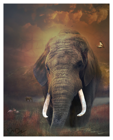 I wanted to make a nice background for my sister since she loves elephants.Elephant is cut from a stock photo, various elements are vector, an olde world map aged, and so on.