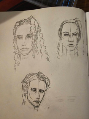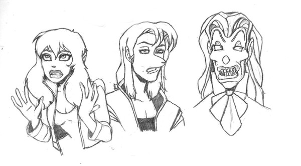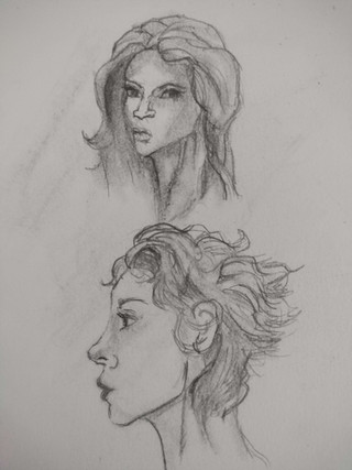 This is the first sketch of two of the lead characters, by a very rusty hand. First light referring to it being just that - first light being shed onto a new world - a new book, new faces, and new art.