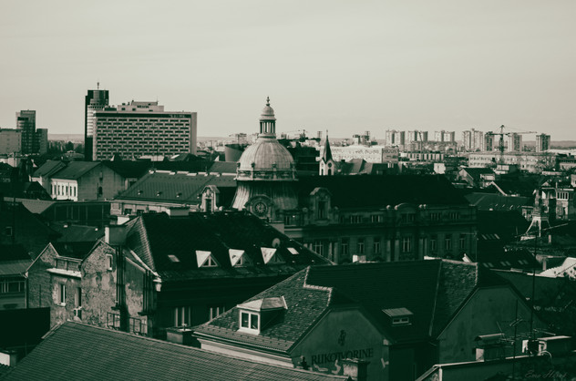 Beautiful photo. I almost would have liked to see it in color, even desaturated, because I bet the sky made the buildings really pop! Great view though! I bet it was stunning in person!