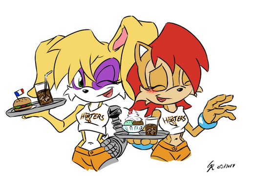 Late VERRRRRYYY LATE happy easter to every oneThis was based of a rp i had with my friend where my characther Roxy ( the one in purple, i know her leg looks wierd its because she has a metal leg) had to find a job to by part for her junk ward motorcycle so Sprinkles told her to go work at a bar for some extra cash, she keeped her trusty wrench in case any one gets too graby