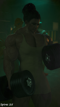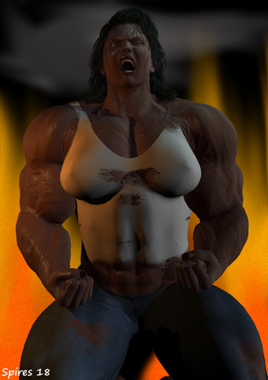 A nightmare played over in Enyo mind. A pile of bodies. The rain washing blood down her face, 2 deep slashes on both her wrists. Enyo body is burning all over, ever muscle twitting. The veins bulging out. Then, they start to grow, her arms and legs doubling in size. Her shirt ripping apart as her chest expands with each breath. Her traps begin climbing up the back of her neck. She leans against a wall to try and catch herself just watch the bricks slow move down as she now grows taller. Anger begins to flood her mind, followed by rage. Lighting strikes and her fists smash into the walls, bring it down. Stepping through the rubble a light is shined on her enormous frame.Sudden, Enyo wakes up from the nightmare. Sweat dipping down all over. Her tank top and underwear feel tighter then when she went to sleep. "Shit." she whisper to herself. Switching on the bedroom light, Enyo open her cupboard door to look at herself in the full length mirror. "For fuck's sake. Not again." Enyo had grown a little. To anyone else it's wasn't much, just a cm taller but muscle had grown just enough to make her look like a pro bodybuilder. Her skin was so tight you could clearly see the muscle fibre underneath without flexing. It would take a few days for her skin to loosen to a more normal look. Luckily this didn't happen too often, every few years or so, but each time it was the same dream.