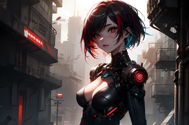 #ai #cyberpunk #pose #dramaticlighting #futuristic #greenhairedgirl #dystopianfuture #dramaticcomposition #greeeneyedgirl