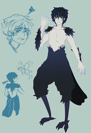 Reference I've been working on in-between commissions. This is one of my persona's, Finch. Who's the familiar of my witchsona Crowe, but Crowe fucked up summoning him so he looks like this. Finch was named that cause you can't go naming your familiar son your name.