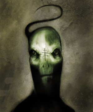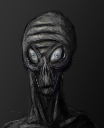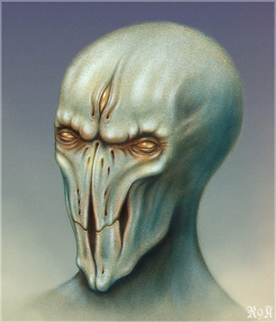 Wow, this looks wonderful! I really like the triangle that's carved into the creature's forehead, and the slight hint of blue lighting. It's a great mix of your style and a bit of Giger's!