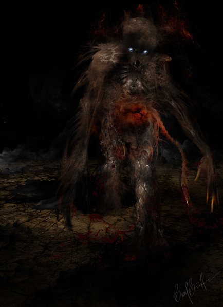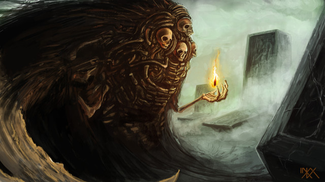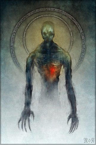 Amazing work on the background!! And the figure looks great in it's rough state, very creepy and mysterious. The glowing effect is really cool, too. ^^