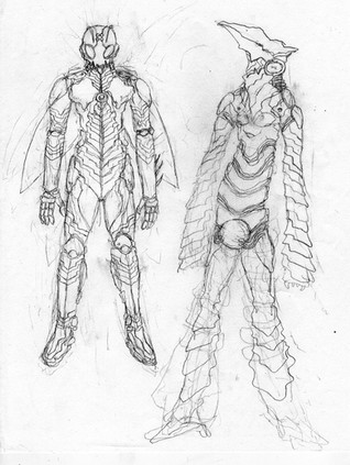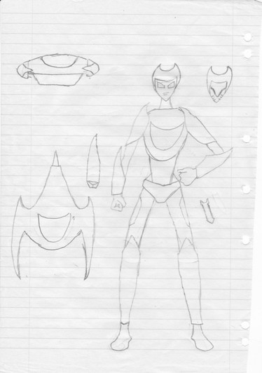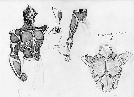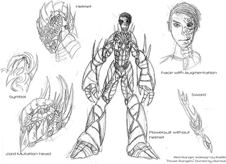 The second one in a series of Power Rangers 1st Season redesigns, which is based on an idea I had for a more serious Power Rangers series/movie (heavily influenced by Guyver, Evangelion, Garo and Kamen Rider the First).The initial sketch, at least, as the linepaper undoubtedly shows.