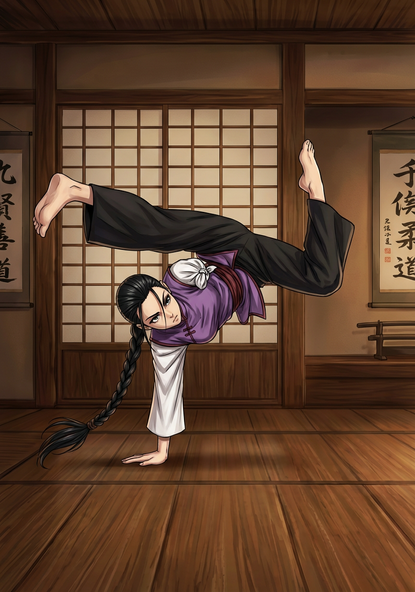 “The second girl to stand up and introduce herself was wearing a teal gi and had smooth, waist-length raven hair. She presented herself as Adrienne Hubert, brandishing a wry smile and the attitude of someone who knows her way around everything. She also spoke French in a way I found a bit odd, which I later found to be the way all true Parisians speak, and her demeanor was easy going and informal, so distant from Madelyn’s composure. Even the contents of her little introductory speech could not have been more different than those of the person who had preceded her. She looked determined to make all of us understand that there were many reasons why, basically, she is never going to be considered a serious candidate to the role of heroine, but also that if, by some weird twist of fate, this school had been able to turn her into one, then there would never again be any doubt that the greatest heroes in all of France were gathered here. […] I am not sure about the wisdom of presenting yourself on your first day of school as a possible abysmal failure, but for sure she at least showed that, despite her default attitude, she is capable of great humility and does not overestimate herself. And judging from the way Mlle. Chesneau and Olivia-sensei kept smiling, whispering and elbowing at each other throughout and after Adrienne’s speech, I think that, at any rate, the teachers took a shine to her.” (excerpt from an e-mail sent on 9/5/1999)