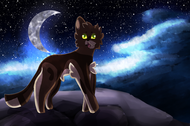 Characters: Silver tabby she on the left: Silverstream. Grey tom on the right: Greystripe