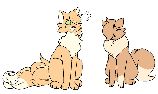 shes really old and grumpy and is missing an antler, part of her ear and an eye so shes always lopsided. her spirit-fire is supposed to look like a sandstorm, along with her wings!!