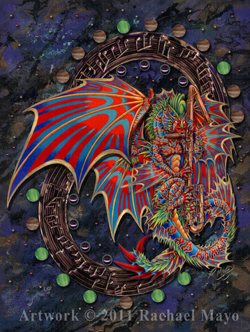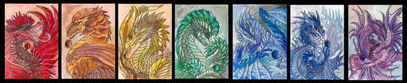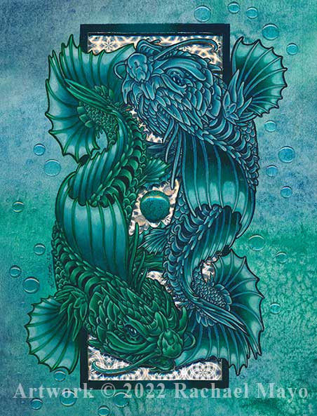 The dragon design was done with ink, watercolor, Prismacolor pencils, and a tiny bit of gel pen.