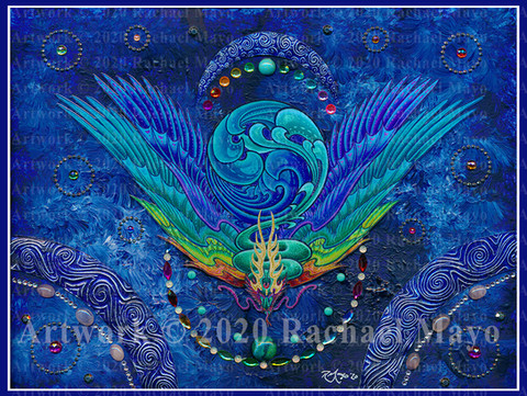 The blue-green board behind the border and dragon is acrylic.
