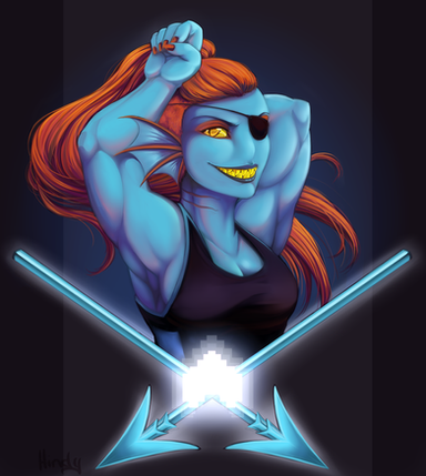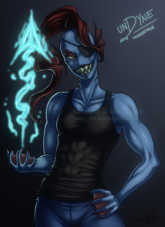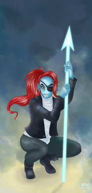 I may or may not be slightly addicted to the game Undertale lately. Β All of the characters are absolutely amazing, I can't decide which my favorite is, but Undyne is definitely in the top three. Β She's everyone's favorite badass warrior, so of course I needed to paint her!Original creator of Undyne is Toby Fox, the maker of Undertale.