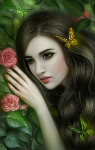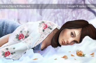 Nice sense of movement here, it seems as if she's falling down and the floating feathers give that feel as well. Nice job