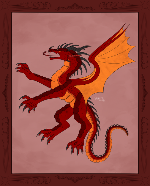 This is actually fairly old, I drew it in April 2007 but never uploaded it anywhere for some reason that I've mostly forgotten (I vaguely recall being in a very bad mood at the time I drew it, and thinking it looked crappy...) I remembered it again today while I was trying to think what art I've got that might made a good logo for myself.. not sure if this one would, but I still like it.Anyway, this is my red dragon persona in a heraldic style. I always liked that style of art and I just wanted to see how well I could duplicate it with one of my own creatures.