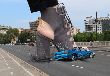 A giantess uses her ballet experience to terrorize the tiny inhabitants of a city. The occupants of a car narrowly escape being crushed by her toes, but will they be able to flee before being squashed by her foot?I do not own any pictures used