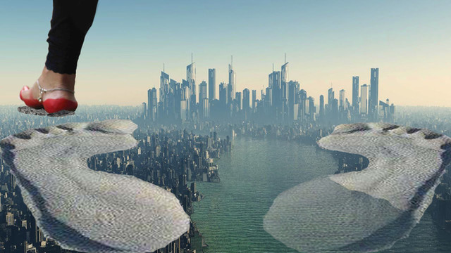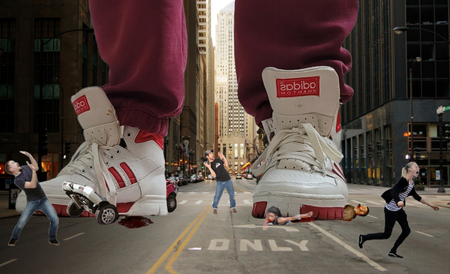 Little people flee from a giantess.All pictures used are not mine.