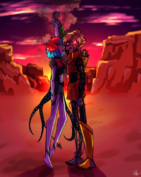 #fire #burning #dessert #loveromance #robot #robotgirl #sleeping #sleepinggirl #trust #couplepairing #warframefanart #enemiestolovers