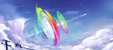 i used Paint Tool Sai for every bit but the rainbow trail. i actually made the rainbow in Sai, then moved over to Photoshop to get it to curve. was very irritating but i finally figured out another aspect of Photoshop. this makes me happy because the better i get at Photoshop, the closer i am to doing another Photomanip image.