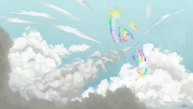 Hay guys! here's a simplistic one for y'all. i've been wanting to do some sky drawings lately but i had no idea what i wanted to do. this idea came to me while i was thinking of the scoota-boom pic. that pic had been done to test manipulation clouds, well, so was this one. i took it upon myself to be a little bit more patient with clouds and actually try to draw them. while this still aren't great clouds, they are a great improvement on ALL of my prior attempts at drawing clouds. also, i really wanted to figure out how to do the sun.