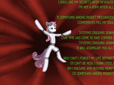 "Right Now Apple Jack is my friend. That's good as it is.... but... if she rejects me... Then she'll turn into the 'mare that rejected me'" - SilverlayWhat Silverlay worries about the most is ruining the relationship with her friend. Noble, really...