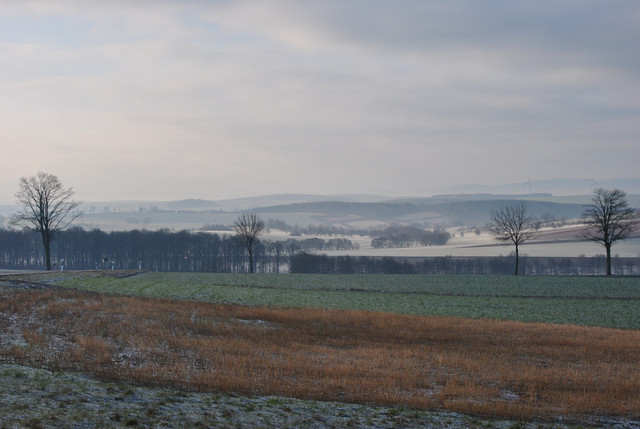 Lovely capture of the fall leaves, and the trees fading into the fog. I miss fog.